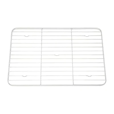 Strong, easy-clean 18-8 Japanese stainless steel construction Optimal for draining, baking and grilling Fits Clover Japanese chef trays Highly durable and stiff - resistant to warping Integrated feet elevates rack for improved airflow