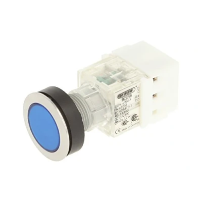 Club push button Stainless Steel with momentary cap in blue Installation opening diameter of 22,3 mm and flat front frame height of 2 mm Beleuchteter tast contact transmitter with 1 N/O Contact, designed for 250 V/6 A and a 24 V LED Connection Type: Screw connection with a cross section can withstand a weight of up to 2.5 mm² IP protection rating: IP 65