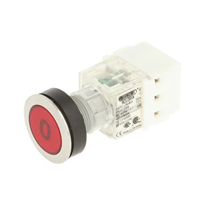 'Club push button Stainless Steel with button cap in red and 0 symbol Installation opening diameter of 22,3 mm and flat front frame height of 2 mm Beleuchteter tast contact Dealer with 1 opener and 1 N/O Contact, designed for 250 V/6 A and a 24 V LED Connection Type: Screw connection with a cross section can withstand a weight of up to 2.5 mm² IP protection rating: IP 65