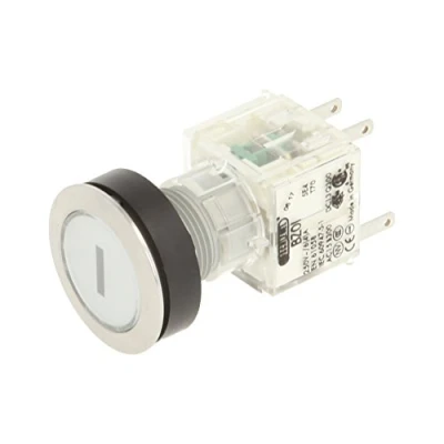 'Club push button Stainless Steel with button cap in clear and I symbol Installation opening diameter of 22,3 mm and flat front frame height of 2 mm Tast contact transmitter with 1 opener and 1 N/O Contact, designed for 250 V/6 A Connection Type: Single Flat Connector 2.8 mm x 0.8 mm IP protection rating: IP 65