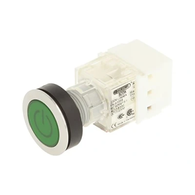 'Club push button Stainless Steel with momentary cap in Green and start/stop symbol Installation opening diameter of 22,3 mm and flat front frame height of 2 mm Key feedback CONTACT Geber with 1 N, 250 V/6 A Connection Type: Screw connection with a cross section can withstand a weight of up to 2.5 mm² IP protection rating: IP 65
