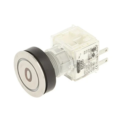 'Club push button Stainless Steel with White Ring Light & Laser marked symbol 0 " Installation opening diameter of 22,3 mm and flat front frame height of 2 mm Illuminated key feedback CONTACT Geber with 1 opener, 250 V/6 A and a 24 V LED Connection Type: Single Flat Connector 2.8 mm x 0.8 mm IP protection rating: IP 65