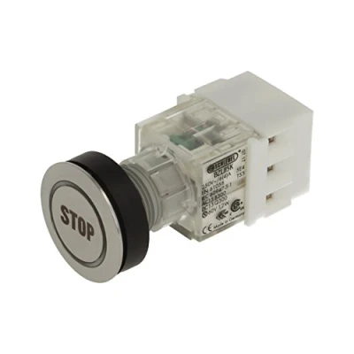 'Club push button Stainless Steel with White Ring Light & Laser marked symbol stop " Installation opening diameter of 22,3 mm and flat front frame height of 2 mm Illuminated Push Button Contact Geber with 2 N/O Contact, designed for 250 V/6 A and a 24 V LED Connection Type: Screw connection with a cross section can withstand a weight of up to 2.5 mm² IP protection rating: IP 65