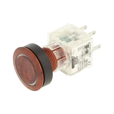 Club push button in walnut wood decoration with white ring lighting Installation opening diameter of 22,3 mm and flat front frame height of 2 mm Beleuchteter tast contact transmitter with 1 N/O Contact, designed for 250 V/6 A and a 24 V LED Connection Type: Single Flat Connector 2.8 mm x 0.8 mm IP protection rating: IP 65