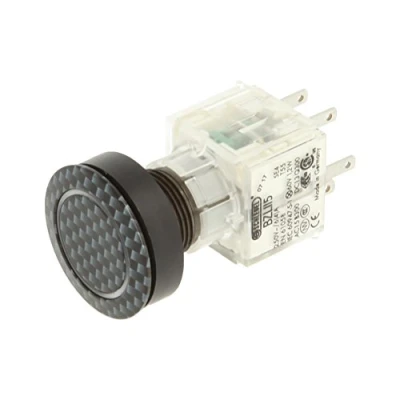 Club push button in carbon style, with white ringlight Installation opening diameter of 22,3 mm and flat front frame height of 2 mm Illuminated Push Button Contact Geber with 2 N/O Contact, designed for 250 V/6 A and a 24 V LED Connection Type: Single Flat Connector 2.8 mm x 0.8 mm IP protection rating: IP 65