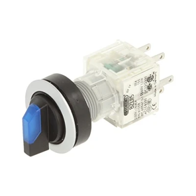 Club selector switch Silver, Blue Backlit toggle with 3 rastenden, at 10, 12 and 14 Installation opening diameter of 22,3 mm and flat front frame height of 2 mm Illuminated Push Button Contact Geber with 2 N/O Contact, designed for 250 V/6 A and a 24 V LED Connection Type: Single Flat Connector 2.8 mm x 0.8 mm IP protection rating: IP 65