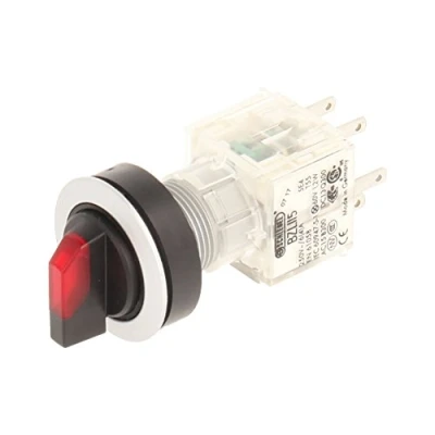 Club Selection Switch Silver, Red Illuminated Toggle, with 2 Tastenden, at 12 and 13 and spring return Installation opening diameter of 22,3 mm and flat front frame height of 2 mm Illuminated Push Button Contact Geber with 2 N/O Contact, designed for 250 V/6 A and a 24 V LED Connection Type: Single Flat Connector 2.8 mm x 0.8 mm IP protection rating: IP 65