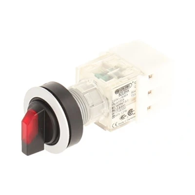 Club Selection Switch Silver, Red Illuminated Toggle, with 2 Tastenden, at 12 and 13 and spring return Installation opening diameter of 22,3 mm and flat front frame height of 2 mm Illuminated Push Button Contact Geber with 2 N/O Contact, designed for 250 V/6 A and a 24 V LED Connection Type: Screw connection with a cross section can withstand a weight of up to 2.5 mm² IP protection rating: IP 65