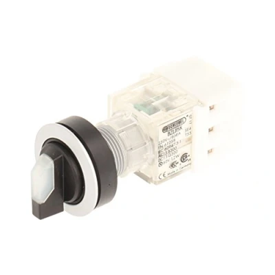 Club Selection Switch has silver and clear illuminated Toggle with 3 Tastenden, on 11, 12 and 13 clock with spring return Installation opening diameter of 22,3 mm and flat front frame height of 2 mm Illuminated Push Button Contact Geber with 2 N/O Contact, designed for 250 V/6 A and a 24 V LED Connection Type: Screw connection with a cross section can withstand a weight of up to 2.5 mm² IP protection rating: IP 65