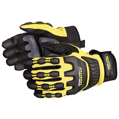 Clutch Gear Impact Protection Mechanics Glove 975 grams of cut protection FEATURES Specially placed thermo-plastic rubber pads at back of hand protect against knocks without creating stiffness PVC Sure Grip palm patches provide excellent grip, and are cushioned for comfort Kevlar thumb patch prevents wear-through in high-stress area Adjustable Velcro cuffs for added protection and comfort