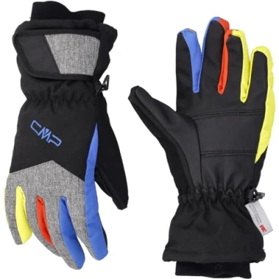 CMP Kids Twill Ski Gloves, Black Royal Limeade, 5
