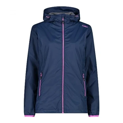 rain jacket Windproof Waterproof WP 5,000 fully taped seams The garment is completely foldable and can be stored in the included bag Full zip, two side zip pockets, fixed hood, elastic cuffs on cuffs, drawstring on hood and jacket hem, CMP logo on the shoulder