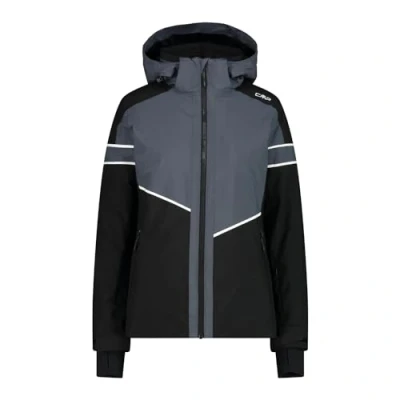 The jacket is designed to ensure comfort and performance when skiing Clima Protect membrane with thermal laminate for waterproof (WP 10,000) and breathability (MVP 10,000). Fully taped seams The Feel Warm Flat (160 g) synthetic fibre padding provides warmth, water resistance and maximum freedom of movement PFC-free, PFC-free waterproofing technology Full-length zip, two side pockets and one on the forearm, removable hood, drawstring on the waistband, adjustable wrist closure with Velcro fastener, inner cuffs with elastic ribbing, CMP logo on shoulder and hood