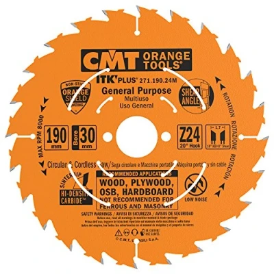 Diameter 190mm - Kerf thickness 1,7mm - Bore diameter 30 (+20+16)mm - Number of teeth: 24 APPLICATION: for rip and crosscuts at high-speed rotation. The blade considerably reduces material waste thanks to the thin-kerf design. Particularly suitable for valuable wood MACHINES: miter saws, table saws, portable and cordless saws MATERIAL: soft and hardwood, plywood, Weight: 0.661386786 Pounds, Manufacturer: CMT