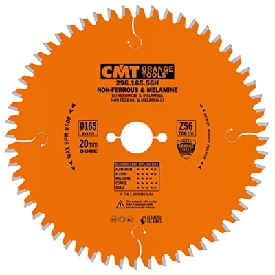 Drag and drop diameter 165 mm, hole diameter 20 mm, hole 2/6/32, tooth number 56 Teeth Thickness: 2.2 mm, body thickness: 1.6 mm, cutting angle -6 neg.Sharpening angle, trapezoidal tooth Use: for cutting tubes, trafilati polimerici panels and laminates Hand-held Material: Aluminium, Brass, Copper, Plastic, non-ferrous materials. Also suitable for cutting melamine and laminated panels but life less., Weight: 0.8157103694 Pounds, Manufacturer: CMT
