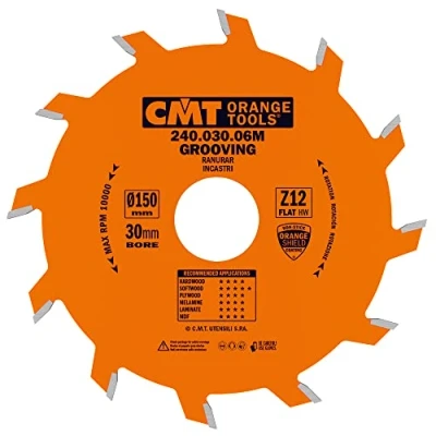 Diameter 150mm - hole diameter 30mm - number of cutting edges or teeth 12 - teeth thickness 3mm - body thickness 2mm - cutting angle 15° Application: for joining and grooves; used couplings can make jokes, chamfers, grooves and trimming Machines: combined and milling machines Materials: soft and hard wood, plywood, chipboard, laminate and MDF., Weight: 0.6944561253 Pounds, Manufacturer: CMT ORANGE TOOLS