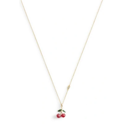 Coach Gold Enamel Green Red Cherry Necklace 45cm