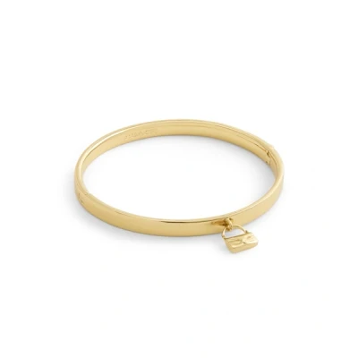 Bring iconic logos to your favourite wrist stack with this stunning bangle from Coach. Crafted in a gold tone, this bangle features the iconic Tabby bag as a gold charm dangle in the centre. A beautiful way to add cool details to your jewellery collection, this bangle would make a beautiful gift. Gold toned Hinged fastening Dangle tabby charm Length: 17.8cm
