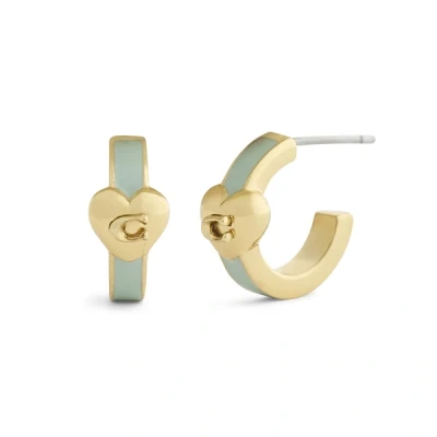 Coach Signature C Heart Huggie Earrings, Women's, Size: One Size, Green