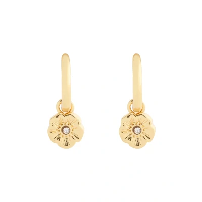 Coach Signature TEA ROSE Charm Huggie Earrings goldcoloured, Women's, Size: One Size, Gold/coloured