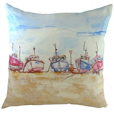 Fishing trawler design by renowned watercolour artist Jennifer Rose Made from printed cotton (front) and polyester (back) Measures 43x43cm Made in the UK From Nauticalia, specialists in nautical gifts and accessories since 1974
