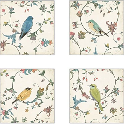 Absorbent stone - absorbs sweating or spilled drinks without making a mess Cork-Backed to protect furniture Set of 4 - comes in a printed box Emily Adams licensed artwork Manufactured In The USA