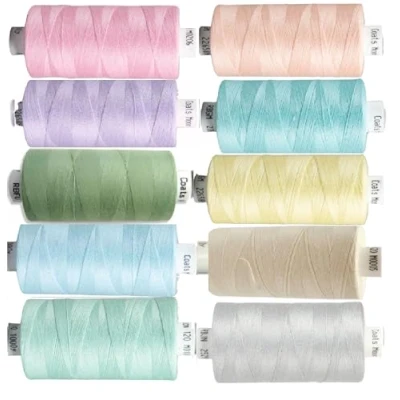 Box of 10 reels -Moon Polyester all purpose thread Sewing OverLocker Quilt Stitch 1000 yards 120’s (Light Mix) + 2 (1 White + 1 Black) 40/2 Spools Free Coats Moon thread is ideal for a variety of sewing applications and hobby crafts. Great for all levels of quilting and sewing projects from beginner to professional. Coats Moon thread is suitable for most fabrics. Coats Sewing Thread in Moon is a lubricated sewing thread, made from 100% stable spun polyester. Shirts, blouses, jackets, lingerie, children’s apparel, underwear, knitwear, dresses and many more. Crafted from durable polyester material, these threads are perfect for both hand and machine sewing, making them ideal for a wide range of projects. Compatible With All Sewing And Serger Machines: Featured with high tensile strength, our all purpose Polyester Sewing Thread can work smoothly on Brother, Babylock, Janome, Singer, Pfaff, Juki, Husqvarna, Bernina and all other types of sewing and serger machines including commercial machines without breaking and fraying.