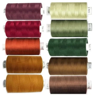 Box of 10 reels -Moon Polyester all purpose thread Sewing OverLocker Stitch Quilt 1000 yards 120’s (Dark Autumn Mix) Coats Moon thread is ideal for a variety of sewing applications and hobby crafts. Great for all levels of quilting and sewing projects from beginner to professional. Coats Moon thread is suitable for most fabrics. Coats Sewing Thread in Moon is a lubricated sewing thread, made from 100% stable spun polyester. Shirts, blouses, jackets, lingerie, children’s apparel, underwear, knitwear, dresses and many more. Crafted from durable polyester material, these threads are perfect for both hand and machine sewing, making them ideal for a wide range of projects.