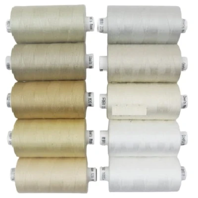 Coats Moon Assorted Sewing Thread Box of 10 reels Polyester All Purpose OverLocking 1000 Yards Each 120’s (Light Neutral) + 2 (1 White 1 Black) Spools Free