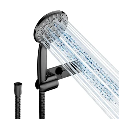 Cobbe Shower Head and Hose with Holder, High Pressure 8 Spray Modes, Universal Powerful Flow Rain Showerhead, Water Saving for Low Pressure, Black