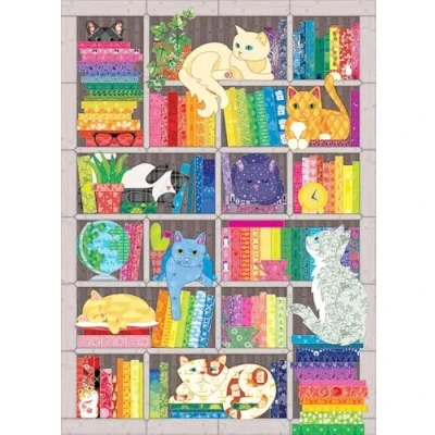 Cobble Hill 1000 Piece Puzzle Rainbow Cat Quilt Sample Poster Included