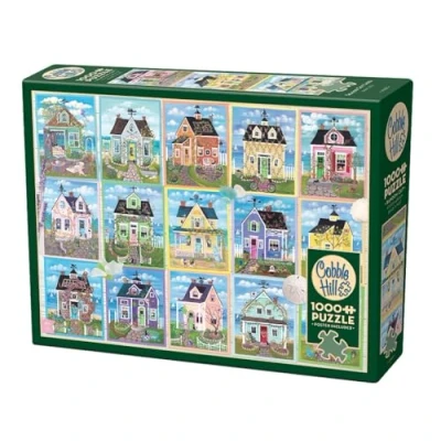 SEASIDE COTTAGES 1000 PIECE PUZZLE: From the moment you open this box, you will appreciate the quality and integrity of a Cobble Hill jigsaw puzzle. How many cats can you count? And what about the dogs? Did you notice the variety of weather vanes? This is Seaside Cottages, a fun and colourful collage of cute little homes that are so inviting that even the cats and dogs want to visit. RANDOM-CUT PIECES: This piece design means each puzzle piece looks different - A fun challenge. HIGH-QUALITY MATERIAL: The glare-reducing linen paper and crisp image make it a perfect piece to frame. EARTH FRIENDLY: All cardboard is made from 100% recycled material. Our ink is also vegetable based. NO INSTRUCTIONS REQUIRED: Simply use the box cover or convenient linen print poster included. Finished size is 26.625" x 19.25”, Manufacturer: Cobble Hill Puzzle Company