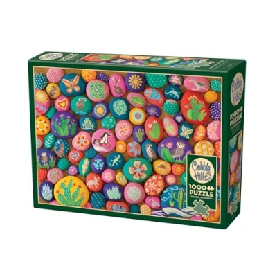 Discover a variety of colourful painted stones with South American motifs with the high-quality 1000-piece "Painted Stones" puzzle from Cobble Hill The detailed motif invites you to amaze and linger. Puzzles from Cobble Hill have a so-called random cut. This gives the puzzle pieces random and unusual shapes and thus create a surprising and unique puzzle experience! The precise cut also ensures low dust content. Cobble Hill stands for sustainability and quality. High quality blue puzzle cardboard, finely crafted linen paper and precise printing ensure durability and premium quality. Made in the USA. Puzzles with Cobble Hill can be an adventure or pure relaxation... whether as a pastime, as a challenging hobby, to promote concentration or simply against boredom. Contents: 1000 piece Cobble Hill puzzle, laid size 68 x 49 cm. Includes puzzle poster. Suitable for ages 12 and up., Manufacturer: Carletto Deutschland