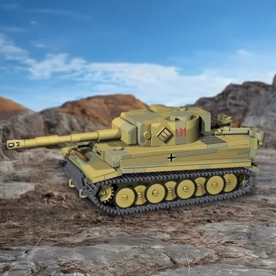 Step into history with the WW2 Panzer VI Tiger I Tank Model, a meticulously detailed replica built from 445 bricks at a 1:48 scale. Designed with precision, its bodywork features authentic pad printing and is accompanied by an easy-to-follow instruction manual, ensuring a rewarding building experience. Compatible with leading brands of construction blocks, this model offers versatility and convenience for collectors and enthusiasts alike. This build model pays tribute to the legendary Tiger I tank, a formidable symbol of German engineering from World War II. Introduced in 1942, the Tiger I was famed for its powerful 88mm KwK 36 gun and robust armour, which made it a force to be reckoned with in frontal engagements. However, its weight and complex design also led to notable mechanical challenges and limited manoeuvrability. The Tiger I 131 is especially significant as it represents the sole operational Tiger I preserved today, housed at the Tank Museum in Bovington, England. Captured in Tunisia in 1943 by British forces, Tiger 131 was meticulously repaired and extensively studied by the Allies, providing invaluable insights into German tank technology. Restored to working order, this model is not only a fantastic building challenge but also a historical artefact, encapsulating a pivotal moment in tank warfare and engineering ingenuity. Whether you’re a history buff or a dedicated model enthusiast, this replica promises to be a standout addition to any collection.