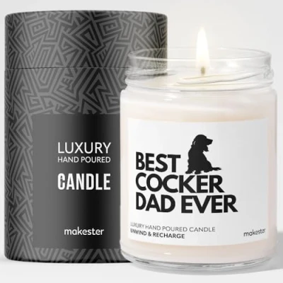 Cocker Spaniel Gifts for Men Luxury Soy Wax Vanilla, Jasmine, Sugared Almond Makester