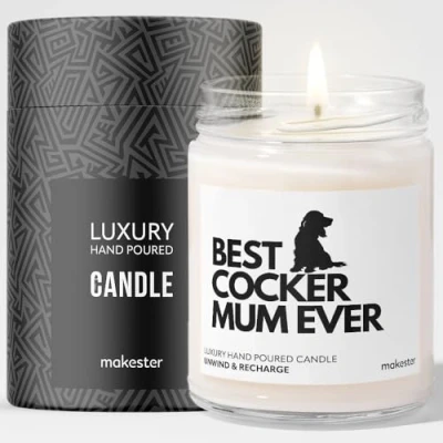Cocker Spaniel Gifts for Women Luxury Soy Wax Vanilla, Jasmine, Sugared Almond Makester