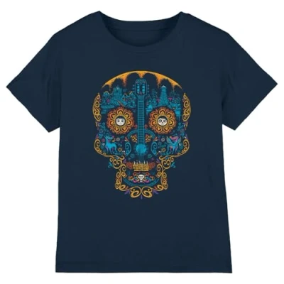 Coco Boys Colorful Day of The Dead Skull with Miguel and Dante Unisex Kids T Shirt, Navy, 5 6 Years UK