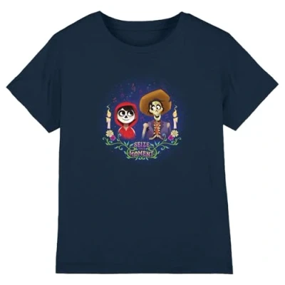 Coco Boys Seize Your Moment with Miguel and Hector Unisex Kids T Shirt, Navy, 7 8 Years UK