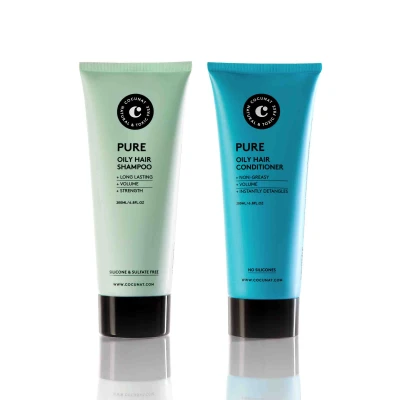 CocunatOily hair shampoo. PURE is the revolution for oily hair. It achieves silky textures with no silicones, maximum hydration with no oily residue, lather power with no sulphates*, for a professional result. Get longer-lasting, truly clean locks. Loose hair that's stronger and healthier, with volume and ZERO OIL.