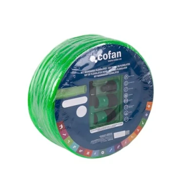 [Product] garden hose with accessories, perfect for use in gardens, patios, carports, camping etc. Does not bend and is very wear-resistant. Material: It is made of very good quality PVC. It has three layers and a translucent green reinforcement net, which makes it very durable and robust. Dimensions: 19 mm (3/4") x 10, 15 or 20 m length. [Accessories] With 2 hose adapters, 1 tap adapter and 1 adjustable nozzle [Recommendation] We recommend exposing it to a temperature of -10°C to +60°C., Manufacturer: Cofan