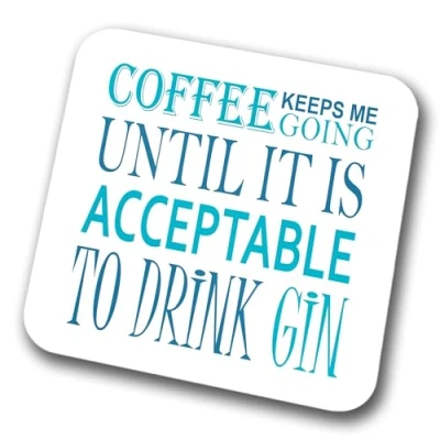 Coffee Keeps Me Going Until It's Acceptable To Drink Gin Coaster High Quality Hardboard Coaster With A High Gloss Top Pack Quantity = 1 Coaster Coaster Measures 9cm x 9cm x 2mm Best for Christmas gift secret santa stocking filler birthday santa gift winter gift santa gift for anyone gift for boy gift for girl gift for men gift for women gift for children and much more