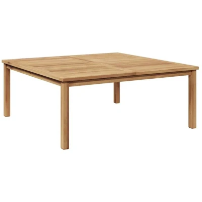 ManoManoGeneral description This modern Teak Coffee Table is designed for simplicity and functionality, making it a standout piece for any outdoor area. It blends seamlessly with garden and terrace settings, perfect for those who appreciate clean lines and minimal fuss. The rectangular shape provides ample space for drinks, magazines, or decorative items, while its natural color adds a peaceful and inviting touch. Built for outdoor use, it combines style and durability to enhance any outdoor setting. Technical specifications Materials: Solid teak wood Colour: Brown Overall dimensions: 110 x 110 x 45 cm (L x W x H) Durable construction Assembly required: Yes Included components: 1 x Coffee table EAN: 8721158937919 SKU: 42002300 Brand: vidaXL Care & Maintenance To maintain the table, simply wipe it with a damp cloth to remove dust. Its solid construction ensures easy maintenance without complicated cleaning routines. Other information