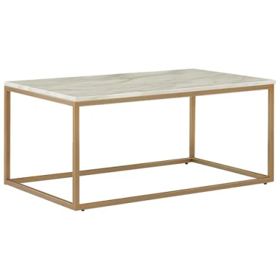 General description This rectangular coffee table features a sleek and modern design with an elegant mid-century flair. The open frame and sophisticated marble finish blend style and functionality, offering visual rest as well as space for storage. The natural classy stone look is achieved by a beige MDF table top and marble finish, giving a luxurious feel to your room décor. Technical specifications Product Type: Coffee Table Style: Modern General Color: Beige, Gold Main Material: MDF Additional Material: Metal Legs Material: Metal Top Material: Engineered Wood Shape: Rectangular Finish: Powder Coated Dimensions: Width: 60 cm, Length: 100 cm, Height: 45 cm Weight: 12 kg Weight Capacity: 20 kg Installation Partial Assembly Required Estimated Assembly Time: 20-40 min Usage To maintain durability and aesthetics, use place mats and coasters. Remove wet stains as soon as possible to prevent damage. Maintenance tips for MDF: Clean with a mild cleaner and a soft cloth, wipe dry after