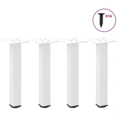 General description These coffee table legs combine form and function, making them an ideal choice for customizing your coffee table. Technical specifications Colour: White Material: Powder-coated steel Overall height: 30-32 cm Tube dimensions: 40 x 40 x 1.2 mm (L x W x T) Bracket dimensions: 100 x 100 x 4 mm (L x W x T) Recommended use: coffee table With adjustable plastic levelers Delivery contains: 4 x Coffee table leg, Screws (M5x18mm) for fixing legs with table top Installation The bracket features pre-drilled holes for easy assembly. Screws are included for fixing the legs to the tabletop (not included). Usage These legs are designed to support a heavy tabletop while ensuring stability. Adjustable foot levelers help maintain stability on uneven floors and minimize scratches on the floor. Other information