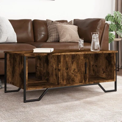 ManoManoGeneral description Add a touch of elegance to your living room with this stylish coffee table. This coffee table serves multiple purposes, functioning as a side table, end table, or couch table in your living room or bedroom, catering to your specific needs. Technical specifications Colour: Smoked oak Material: Engineered wood, metal Dimensions: 100 x 51 x 40 cm (W x D x H) Maximum load capacity (total): 50 kg Assembly required: Yes Usage Ample storage space for keeping your magazines, books, DVDs, remote control, and other small items well-organised and within reach. The sturdy tabletop is ideal for placing your drinks or any other necessities you need close at hand. Easy to clean with a damp cloth. Other information