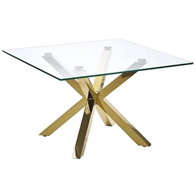 AmazonSquare coffee table with a glass top and metal legs Perfect addition to any modern or glam bedroom or living room The tabletop is made entirely out of glass, and is supported by stable metal legs The transparent top puts focus on glossy metal legs Requires partial assembly, manual provided