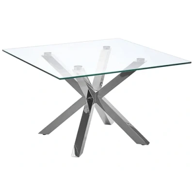 AmazonSquare coffee table with a glass top and metal legs Perfect addition to any modern or glam bedroom or living room The tabletop is made entirely out of glass, and is supported by stable metal legs The transparent top puts focus on glossy metal legs Requires partial assembly, manual provided