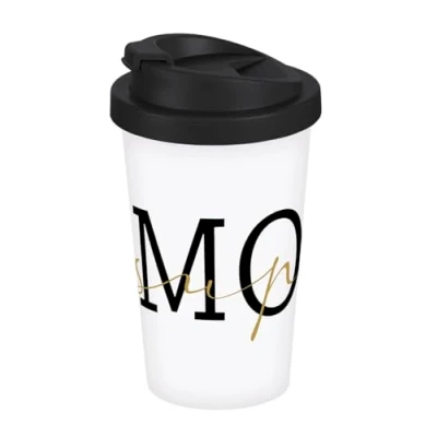 The coffee to go mug Super Mom fake gold 400 ml is the perfect companion for mothers. The coffee mug is a beautiful eye-catcher on the go and also in the office. But not only does it look great, but also the properties of the leak-proof double-walled coffee to go mug are not to be underestimated. The hot drink is kept warm for longer thanks to the double-walled insulation. In addition, it is leak-proof due to the silicone seal in the lid and the sealing cap. A great gift idea for mums on Mother's Day, birthday or Christmas. Product details: material: polypropylene, double-walled, contents approx. 400 ml. Height: approx. 16.5 cm, diameter approx. 9 cm, screw cap and cap, silicone ring in the lid, leak-proof, hand washing recommended