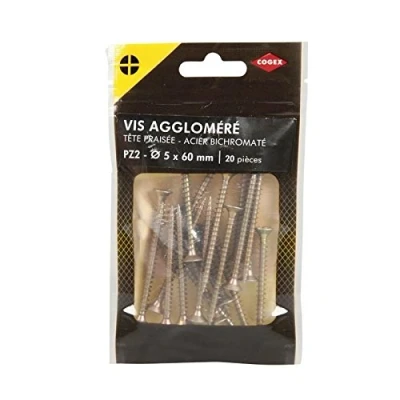 Cogex 85209 agglomère Screws Pozidriv, Gold, 2 x 5 60 mm, Set of 20)