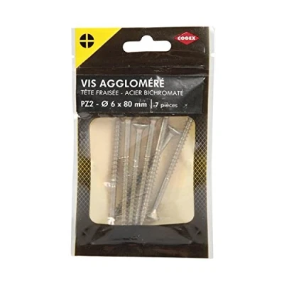 Cogex 85210 agglomère Screws Pozidriv, Gold, 2 x 6 80 mm, Set of 7 Pieces
